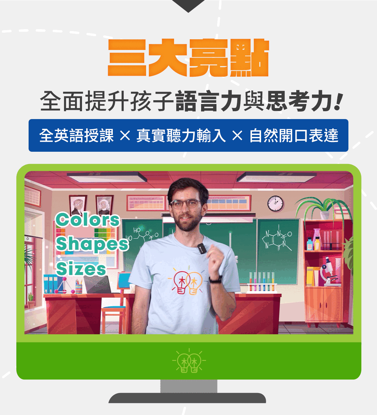 A:孩子會建立英文聽力、理解力與科學主題字彙,真正能用英文理解學科內容!